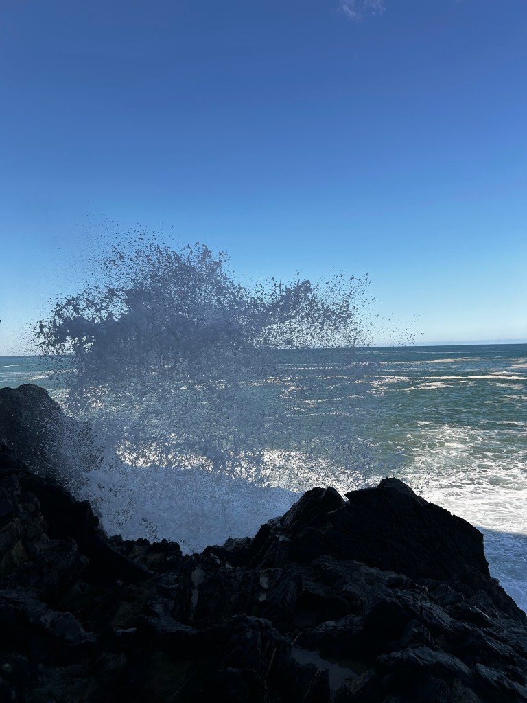 Vatten får mig ofta att förundras och fast jag förstår att det är direkt livsfarligt att vara i dessa många meter höga brusande vågor som slår mot de ännu högre klipporna så vill jag helst bara var mitt i underverket. Helt fascinerande. Det ger en känsla av tillfredsställelse och det är verkligen inte underligt att förundran är avstressande.