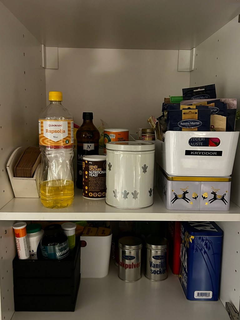 Under veckan som kommer är det övriga skåp i köket som ska gås igenom, undrar just hur mycket som kommer finnas kvar när jag är klar?
