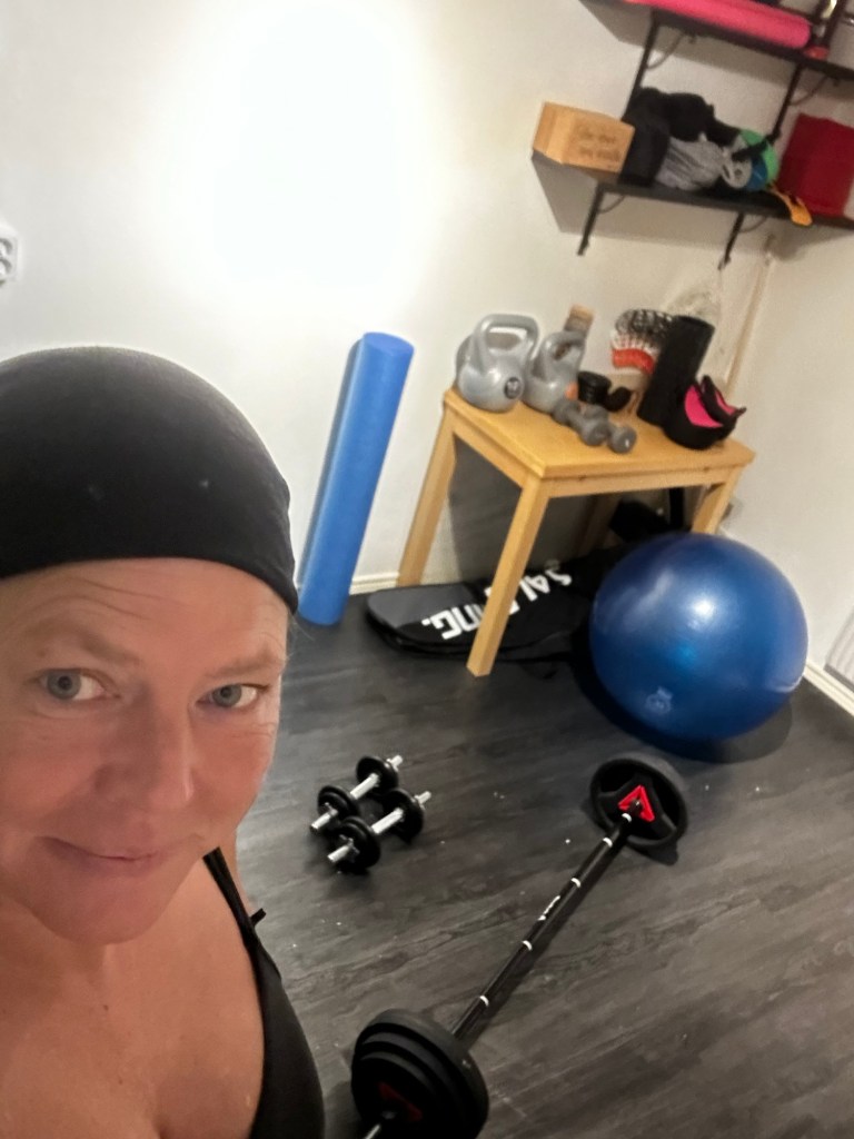 I källaren har vi ett träningsrum, ja det används av alla som bor hemma. Mest flitig är 13-åringen som trixar innebandy en bra stund varje dag och som kör fyspass när det regnar eller styrka om han inte har sällskap till gymmet. Maken kör lite styrka och använder vår hemgjorda stakmaskin för att komma i form inför Vasaloppet. De första veckorna på året körde jag minst 3 styrkepass i veckan (använder ju Hälsorevolutionen 12-veckorsprogrammet) och numera är det fyra. Visst har det varit någon vecka när något pass inte blivit av, men över lag är jag väldigt nöjd. Jag känner mig starkare och det är väl ingen som ångrat ett träningspass efteråt?